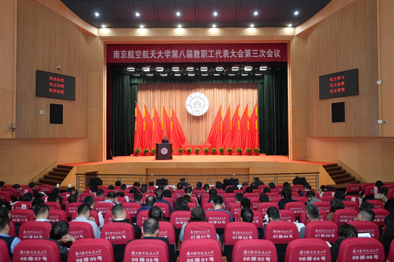 会上,校长姜斌代表学校作了题为《凝心聚力 共创未来 以改革创新汇聚学校高质量发展新动能》的工作报告。他指出,一年来学校持续深化党建领航、战略引领、人才培养、科技创新和全面开放的特色发展体系。新时代新征程,要全面学习贯彻党的二十大精神,以习近平总书记关于教育科技人才重要论述和致南航重要勉励精神为根本遵循,以实干担当推动主题教育成果向办学治校成效转化,深入贯彻落实学校第十七次党代会决策部署,加快建设航空航天民航特色鲜明的世界一流大学。他指出,要坚持以习近平新时代中国特色社会主义思想为指导,全面学习贯彻党的二十大精神,进一步深刻领悟“两个确立”的决定性意义,坚决做到“两个维护”,落实好学校第十七次党代会决策部署,勇担国家战略科技力量和人才力量第一方阵的光荣使命,竭尽全力改革创新发展、全力以赴破解发展难题、用心用情服务广大师生,奋力推动学校高质量、系统性、国际化发展,为扎实推进新型工业化,助力强国建设、民族复兴作出新的更大贡献。