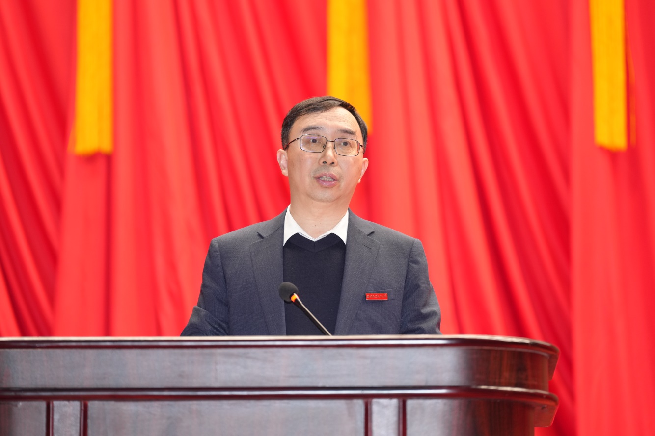 校党委书记单忠德作了题为《持续深化改革 凝心聚力赋能高质量发展》的总结讲话。他代表学校党委向无私奉献在教书育人、科研创新、服务管理岗位上的广大教职员工表示衷心感谢!他指出,一年来,学校党委坚持以习近平新时代中国特色社会主义思想为指导,全面贯彻党的教育方针,落实立德树人根本任务,团结带领全校教职员工改革创新、砥砺奋进,携手办成了一系列事关学校长远发展的大事、要事,解决了一系列阻碍学校发展、影响师生福祉的难题、难事,全面开启了加快建设航空航天民航特色鲜明的世界一流大学新征程。他指出,要坚持以习近平新时代中国特色社会主义思想为指导,认真践行“为党育英才、为国铸重器”办学使命,全力以赴改革创新发展、竭尽全力破解发展难题、用心用情服务广大师生,加速加力推动学校高质量、系统性、国际化发展,探索更多南航模式和南航范式,为扎实推进新型工业化,为强国建设、民族复兴贡献更大的南航智慧和南航力量。他强调,在年终岁尾事务繁忙的时刻,要牢牢把握意识形态主动权,切实做到科研再忙、安全不忘,工作再忙、保密不忘,以时时放心不下的责任感筑牢校园安全稳定防线。