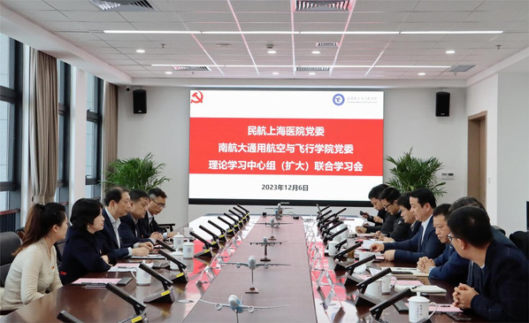 12月6日,通用航空与飞行学院党委与民航上海医院党委以“学懂弄通做实习近平新时代中国特色社会主义思想,奋力谱写交通强国建设民航新篇章”为主题,开展联合学习会并签署战略合作协议。民航上海医院党委书记任斌、航空医学研究室负责人张琳、通飞学院党委书记高健、院长王勤、副院长司海青及双方相关同志出席会议。会议由高健主持。
