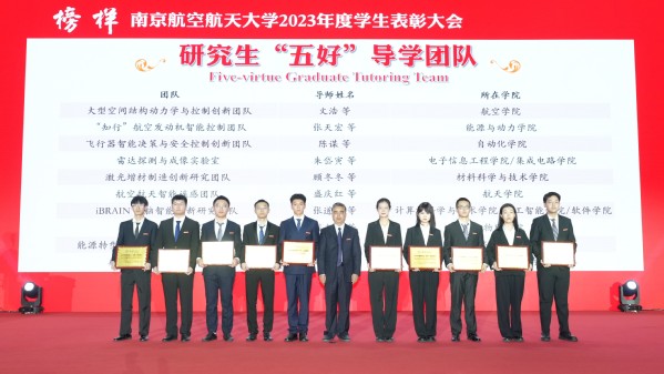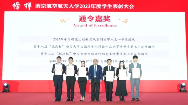 五类优秀学生(团队)代表通过“胸怀理想,厚植家国情怀”“挺膺担当,涵养进取品格”“吃苦奋斗,激扬青春风采”三个篇章,讲述个人或者团队与祖国同向同行,与时代同频共振的成长故事。随后,2023年度斩获多项赛事的获奖学生代表们共同分享了南航学子肩负时代赋予的责任,怀抱梦想又脚踏实地,敢想敢为又善作善成的成长故事,展现出信仰坚定、刻苦钻研、不畏困难、团结奋斗的精神风貌。