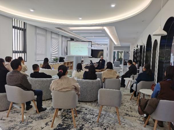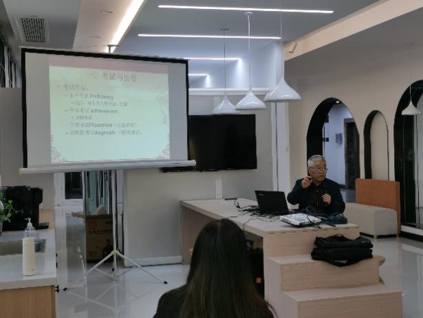 11月28日下午,由外国语学院主办的“乐享”课程建设活动在学院一楼院史室顺利开展。本次活动由副院长徐以中主持,吴鼎民、谢小苑主讲,两位老师围绕“英语试卷编制及质量评价”、“教材建设探讨”话题分享了自己多年来的心得体悟,外国语学院和其他学院20余名教师参加。