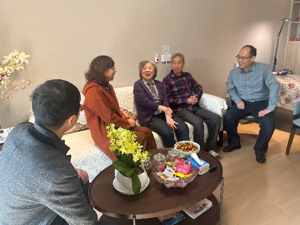 考察期间,离退休处处长张环、党工委书记方正还带队慰问了居住在养老机构的赵淳生夫妇,严仰光、诸芝琴夫妇,孙文宾夫妇,赵明亮夫妇,把学校的关心和组织的温暖送到老同志心中。老同志们见到“家人”都非常开心,纷纷感谢学校和离退休处的关心关怀,表示目前的养老居所生活配套及适老设施一应俱全,就如同家里一般温馨、舒适,请学校党委放心。
