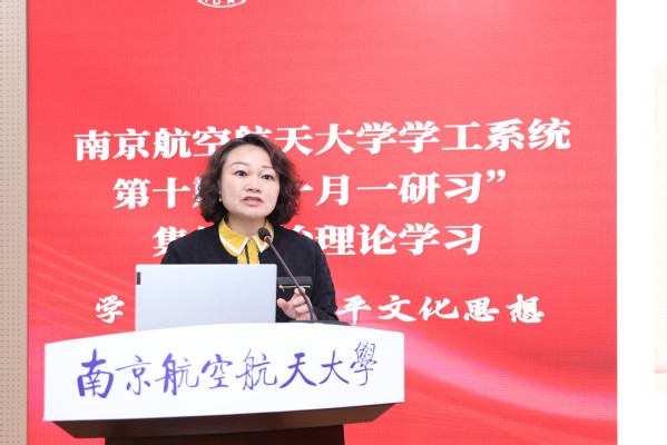 王晖从深刻认识宣传思想文化工作的重要意义、准确理解习近平总书记重要指示和宣传思想文化工作会议的精神实质、深入学习习近平文化思想、学习贯彻习近平文化思想的“南航实践”四个方面作系统领学,以“润心铸魂 ——以高品质文化赋能高质量内涵式发展”为题回顾了南航近年来的文化建设工作,希望学工人员身体力行认真践行新时代南航精神文化,让南航的文化绵延不绝,让南航的创造生生不息。