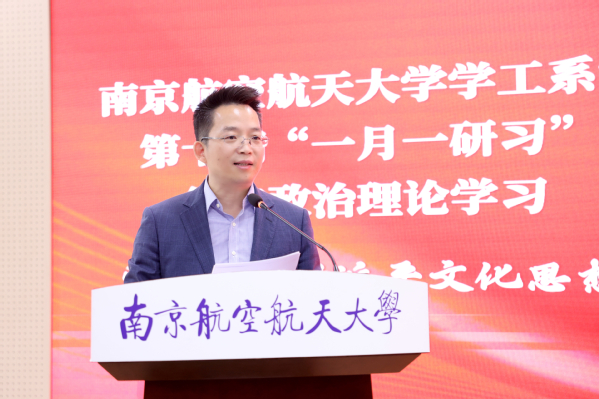 施大宁以《一月一研习:学思悟行相统一》为题,从学习习近平总书记系列讲话体会、教育高质量发展面临的形势和任务、大思政课程体系建设的思考与实践三个方面作专题报告,以习近平总书记关于教育教学的三篇重要讲话为切入,系统阐述了中国特色、世界一流大学和优势学科体系的建设路径,深入剖析了新时代人才培养的重要任务,指出南航的人才培养要牢牢把握好立德树人、追求卓越、生态重构的新时代教育特色,培养堪当民族复兴大任的时代新人。