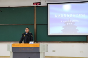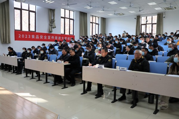 为做好2023年全国食品安全宣传周活动,宣传贯彻食品安全法律法规,强化食品生产经营者的法律意识、责任意识、诚信意识,营造良好食品安全氛围,促进社会和谐发展。12月7日,以“尚俭、崇信、尽责,同心共护食品安全”为主题的食品安全宣传周进大学校园活动在我校举行,校长助理黄炳辉、江苏省高校后勤协会副会长兼秘书长黄在宇、南京市餐饮服务食品安全监督所所长兼南京市食品药品监督稽查支队支队长杨晓辉出席活动。活动由南京市餐饮服务食品安全监督所四级调研员李明华主持。本次活动为南京市市场监督管理局和江苏省高等学校后勤协会联合主办,我校后勤集团承办。南京市食品药品监督管理局及在宁高校后勤部门分管食堂工作的领导参加活动。