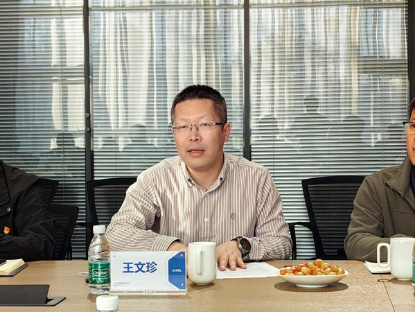 江苏时代党委书记王文珍代表公司党委对南航天目湖校区党工委书记王伟华一行表示热烈欢迎,他就宁德时代在江苏溧阳的发展情况,以及江苏时代党委发展情况进行了简要介绍。他指出,江苏时代党委以“向芯力”党建,推进“绿色引擎”建机制、“一建四联”抓提质、“向阳行动”强队伍、“创新引领”助产业、“红色情怀”暖人心的核心工作。他希望以联学活动为契机,深入开展党建共建活动,推动校企对接、校企合作,充分发挥双方产学研优势互补,实现双方党建工作合作共赢、共同发展。