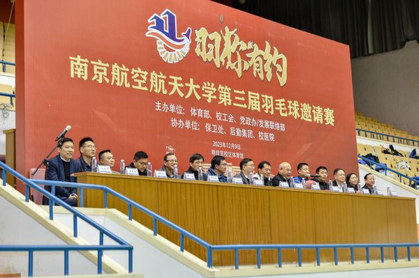 12月9日,我校于明故宫校区体育馆举办第三届“羽你有约”羽毛球邀请赛。省工信厅副厅长、党组成员、省国防办主任李强,省民政厅二级巡视员、机关党委副书记方立明,秦淮区委常委、统战部部长还建军,金城集团党委书记、董事长、总经理田爱军,南京熊猫电子股份有限公司总经理胡回春,航空工业南京宏光空降装备有限公司副总经理杨雪松,交通银行江苏省分行副行长缪洋,中国南方航空南京营业部总经理禤其锐,校长姜斌,副校长吴启晖,校长助理、党政办公室主任张启钱,校工会、保卫处、体育部、校医院、后勤集团等单位负责同志参加活动。副校长黄志球主持开幕式。