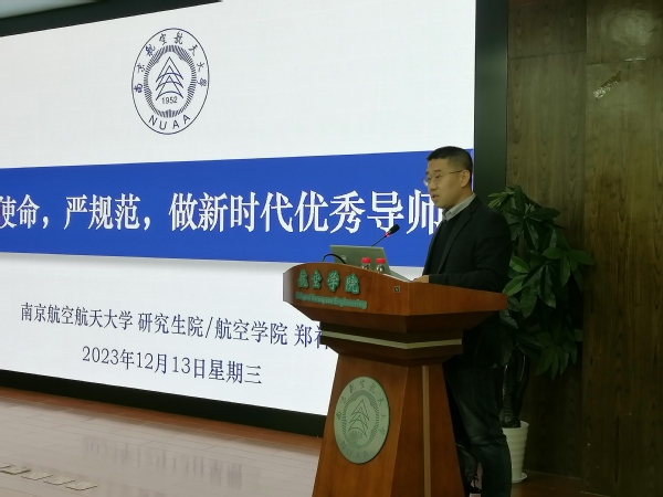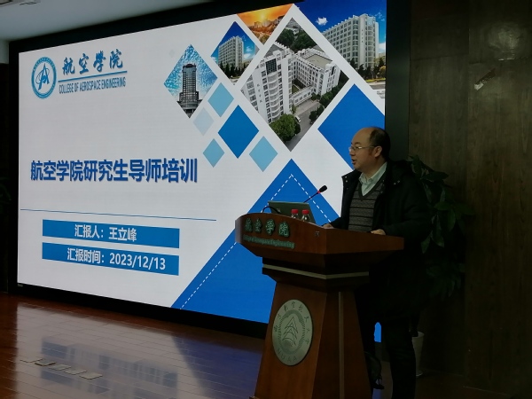 12月13日下午,航空学院举行了研究生导师培训会,研究生院副院长郑祥明、学院副院长王立峰、空气动力学系教授史志伟、新上岗的导师以及教学办相关人员参加了此次培训会。会议由学院党委副书记杨杰主持。