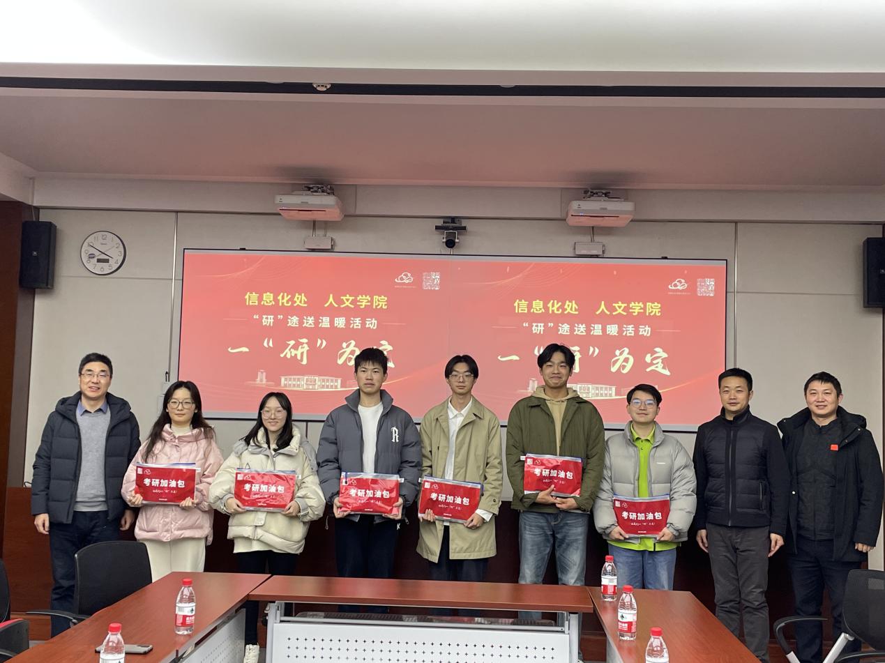 随着考研冲刺时刻的临近,在距离考研倒计时10天之际,信息化处与人文学院共同为2024届考研学子送去温暖的关怀与慰问,组织了一场特别的“一研为定,研途送温暖”主题活动。信息化处处长张焱,信息化处副处长王兴虎、谢健,人文学院党委副书记刘思辰、考研师生代表参加活动。