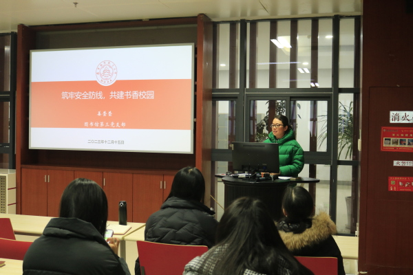 为深入学习贯彻习近平总书记重要讲话精神,强化高校安全教育,12月15日上午,图书馆第三党支部联合材料科学与技术学院本科生0621党支部,在将军路校区图书馆读者活动中心开展“筑牢安全防线,共建书香校园”主题党日活动。
