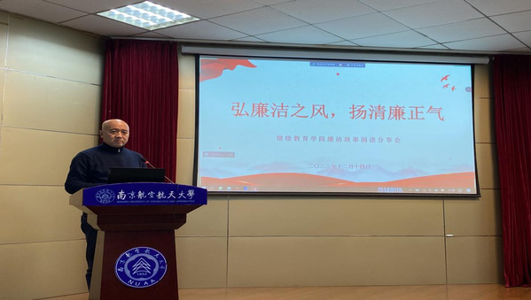 为深入学习贯彻习近平新时代中国特色社会主义思想和党的二十大精神,压实党风廉政建设的主体责任,持续推动“清廉南航”走深走实,12月14日下午继续教育学院党委组织开展“弘廉洁之风,扬清廉正气”——廉洁故事阅读分享会。学院党委书记刘建成、副书记尹春苹、副院长赵宇以及全体师生党员参加本次活动。