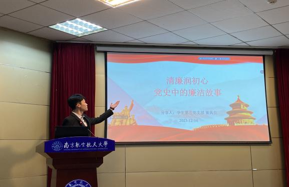 分享会上,八位分享者轮番登台,以“清廉南航”为主题,通过演讲与情景表演,讲述了“战功赫赫,朴实勤勉”张富清、“人民公仆,助人为乐”孔繁森、“一心为公,以身作则”邓颖超、“善德兴邦,清廉暖民”周恩来、“艰苦朴素、廉洁自律 ”的焦裕禄……整场廉洁故事分享会以“清”为轴,以“廉”为本,不仅给全体党员们带来了一场视听盛宴,也在寓教于乐中传递了廉洁价值理念,让廉洁文化深入人心。