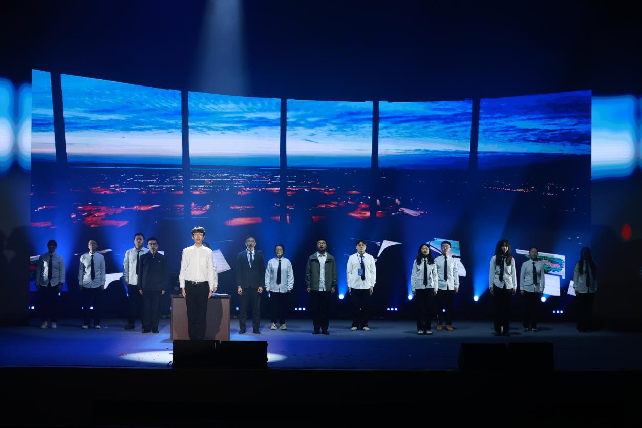 航天学院、航空学院、能源与动力学院、机电学院共同演绎的《初心》将场景设定在了“元宇宙”空间中,生动再现了在南航建校、无人机研制、微小卫星发射、火星信标装置研发等重要事件中,南航人展现出的独立自强、对标先进、为国奋斗、逐梦九天的精神气质。
