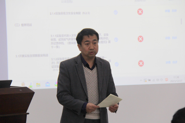 会上,朱旭东针对学院近期发布的各项安全制度进行解读,包括学院实验室安全管理办法、学院实验室安全准入实施细则、学院安全生产应急预案,以及最新颁布的学院实验室安全生产工作考核及奖惩办法。张越超针对学院开展实验室安全认证系统中的各项指标和网站系统操作方法进行了详细讲解。
