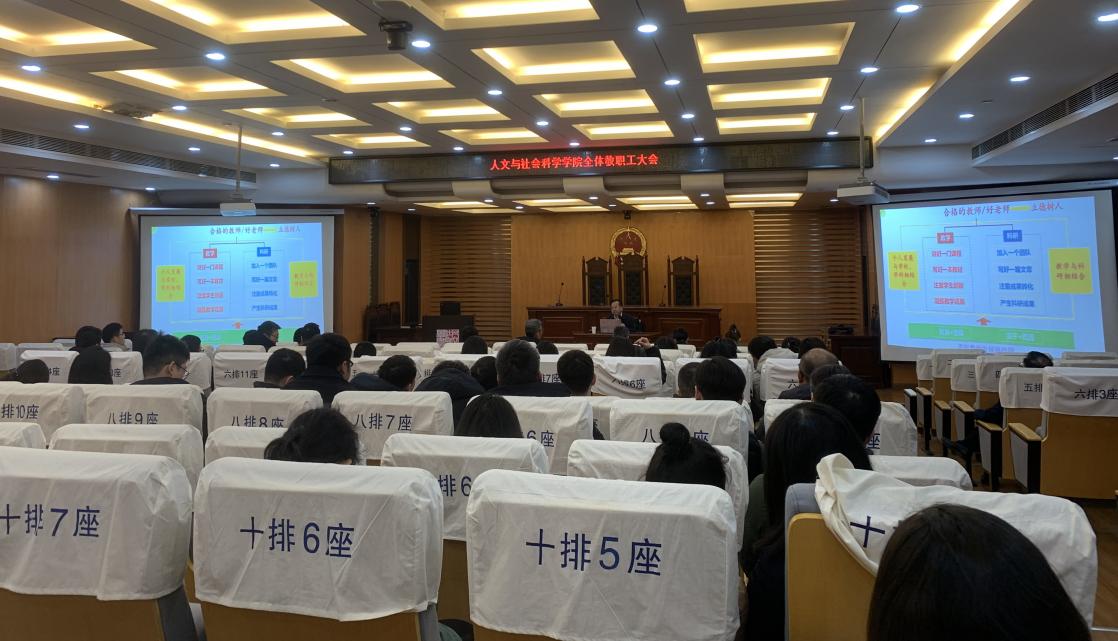 12月26日,人文与社会科学学院召开全体教职工大会暨2023年学院领导述职述廉会。会议邀请电子信息工程学院博士生导师、国家“万人计划”教学名师王成华作题为《青年教师发展与教育教学改革》的专题辅导报告,传达学校重要会议精神,总结2023年学院各项工作。院党委书记楚广兴主持会议,全体院领导班子成员、教职工及学生代表参加会议。