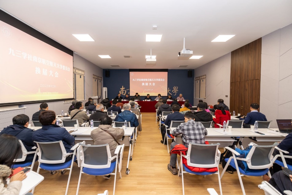 12月20日下午,九三学社南航委员会召开换届会议。九三学社江苏省委会专职副主委孙丽、秘书长钟骏秋,校长姜斌,校党委常委、组织部部长、统战部部长李遥等出席会议,40余名九三学社社员参会。会议由九三学社南航委员会委员陈卫东教授主持。