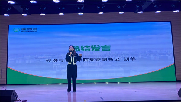 最后,胡苹进行总结发言,她再一次对孙建敏的倾情分享表达感谢,并对南航BA学社提出要求和期待。她强调,BA学社要以学生版EDP为目标,规划好建设方向,为学院、南航、社会培养拥有管理培训专业技能和经验的创新人才和未来青年企业家,经管的学生要把握科创竞赛和BA学社发展的重要机遇,不负青春、不负韶华,在科研的道路和大学的成长中勇于尝试、敢于担当。