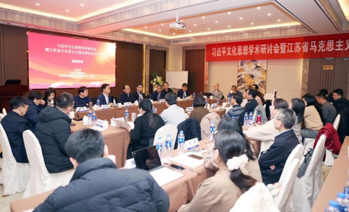 2024年1月14日,习近平文化思想学术研讨会暨江苏省马克思主义理论研究会2023年会在南京召开。江苏省马克思主义理论研究会会长、南京大学马克思主义学院院长胡大平、我校党委书记单忠德院士以及来自南京大学、江苏省委党校、东南大学、南京师范大学、河海大学、江南大学等江苏高校四十余位专家学者出席了本次会议。