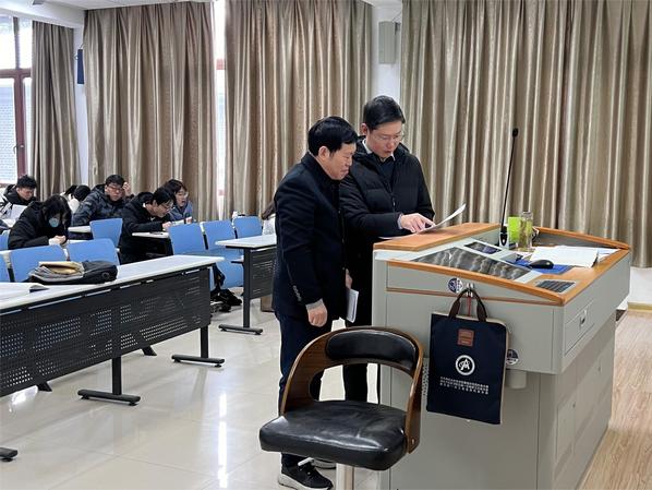 一早,姜斌一行走进《毛泽东思想和中国特色社会主义理论体系概论》的课堂,代表学校党政领导班子向师生送去新学期问候,勉励同学们做好新学期规划,潜心学习;鼓励教师持续推动课堂教学改革,积极创新教学方法和教学内容,聚焦提升教育教学质量。