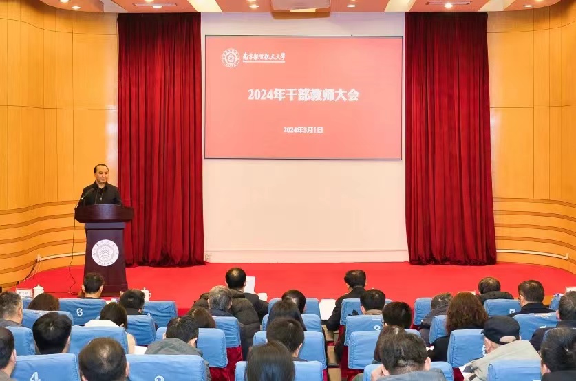 3月1日,我校召开2024年干部教师大会。中国科学院院士朱荻、郭万林,全体校领导、党委常委、校长助理,校级老领导代表出席了会议。会议通过线下主会场、线上分会场同步召开。校党委副书记陶勇主持会议。