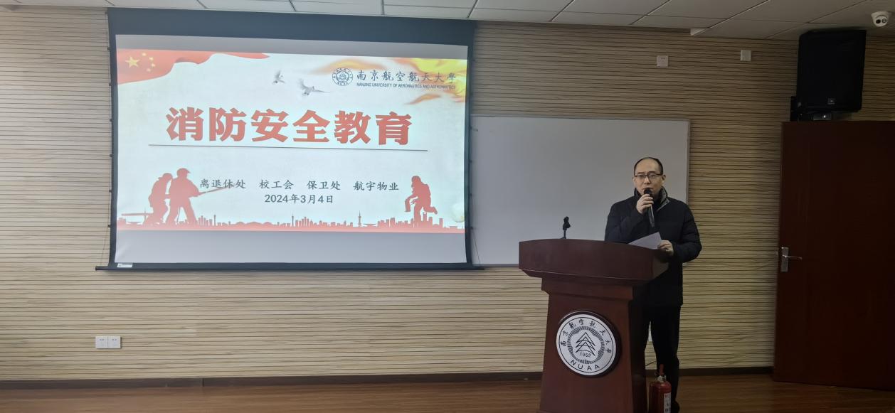 为树牢安全意识,普及消防知识和技能,3月4日离退休处联合校工会、保卫处和航宇物业公司,在西苑教职工活动中心组织开展消防安全知识培训。部分退休老校领导、老年群团组织负责人、老年大学班主任、活动中心物业管理员及相关部门工作人员近五十人参加了培训。