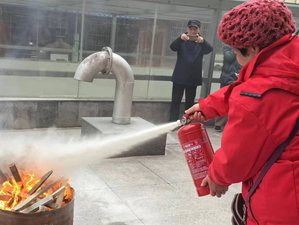 随后,杨磊讲解了灭火器的构造及正确使用方法,现场示范了“一提、二拔、三握、四压”标准流程,并带领老同志和工作人员现场体验了灭火器灭火的过程。保卫处还为老同志们精心准备了《家庭消防知识手册》,方便老同志们把“安全”带回家。
