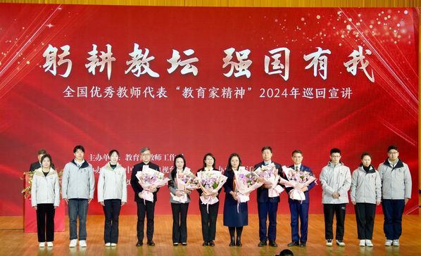 宣讲报告会历时约90分钟,北京师范大学艺术与传媒学院院长、全国最美教师肖向荣,山西机电职业技术学院教授、国家级教学名师、全国教书育人楷模李粉霞,江苏省南京市浦口区行知教育集团总校长、全国教书育人楷模杨瑞清,广西壮族自治区北海市第一幼儿园园长、全国教书育人楷模、全国最美教师范徽丽,广东省佛山市顺德区启智学校党支部书记、校长、全国模范教师、全国最美教师申承林,湖北省武汉市盲童学校教师、全国最美教师、全国模范教师张龙等6位宣讲团成员通过自身的执教经历,讲述了他们躬耕教坛、无私奉献的感人故事,回顾了在教育战线上践行教育家精神的生动实践。现场氛围热烈、掌声不断,师生观众深受感染、倍受激励。