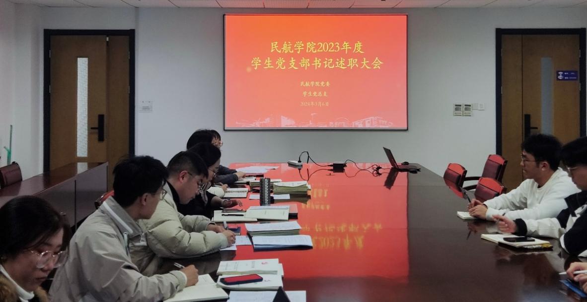 为全面贯彻落实新时代党的建设总要求,紧扣高质量党建领航高质量发展主线,推动全面从严治党向基层延伸,3月6日下午,民航学院学生党总支召开2023年度学生党支部书记述职评议大会。学院党委副书记王艳、组织员贺彩、学生党总支委员、各学生党支部书记和支委会成员参加会议,会议由党总支委员付昊主持。