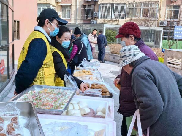 南航美食,美名远扬。后勤集团饮食中心为老同志们特意准备了丰富多样的菜肴、点心、水果等,吸引了很多居民前来采购。“食堂的饭菜很好吃、卫生还便宜,我们不用出小区就能买到,真是太方便了!”一位老同志赞叹。