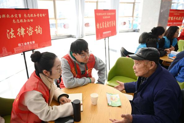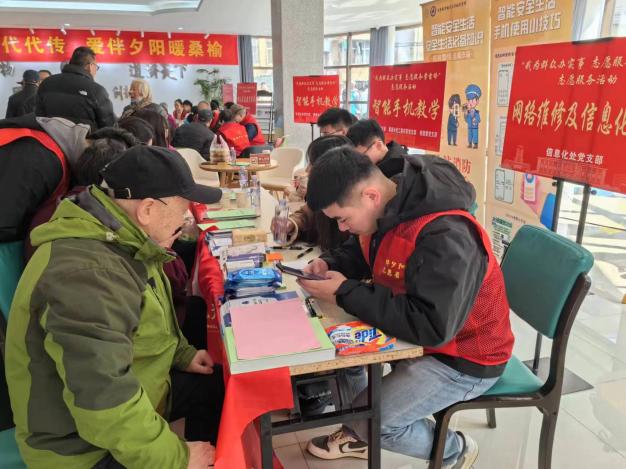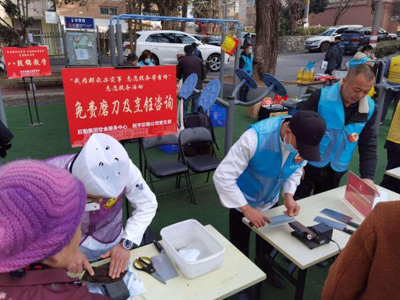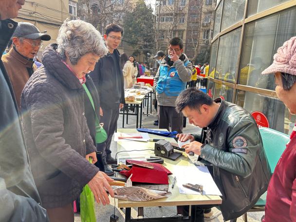 学校机关部门的工作人员为老同志们解答有关政策,宣讲反诈骗知识,手把手教学使用智慧校园,宣讲安全知识;校医院的医护人员为老同志们量血压测血糖,问诊答疑,保健咨询;后勤、物业的工作人员为居民免费磨刀,提供水电木工维修、小家电维修、衣物缝补、车辆检查等服务;学生志愿者开展法律援助咨询、拍照服务。各个单位的志愿者充分发挥专业优势为居民和老同志们带来多种多样的便民服务,及时解决他们的“急难愁盼”问题。活动现场,人来人往,热闹非凡,不少人竖起大拇指,对志愿者连声称赞。