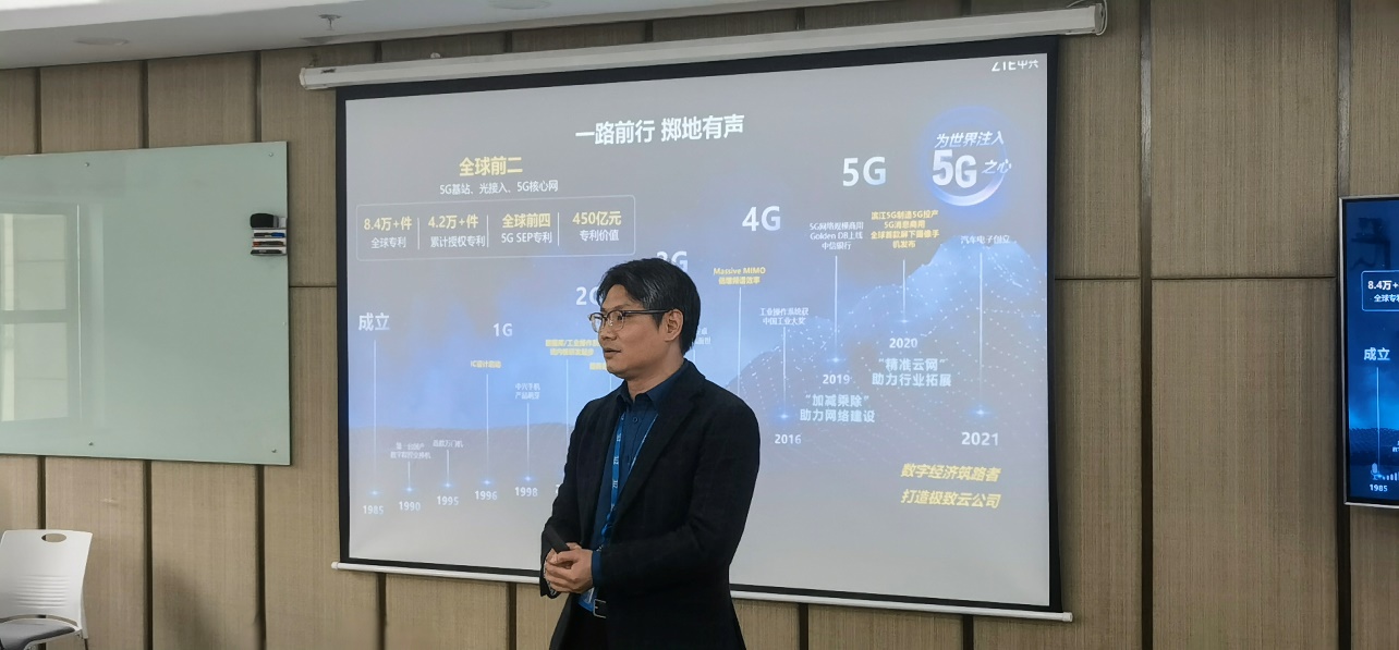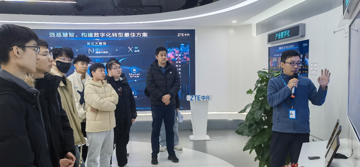 学院一行首先参观了中兴5G行业全球创新中心实验室。通过宣传片及企业方细致的讲解,了解到5G技术在新基建、智能视频、智慧教室、智能政务、智慧交通、智慧电力等方面的前沿应用研究。