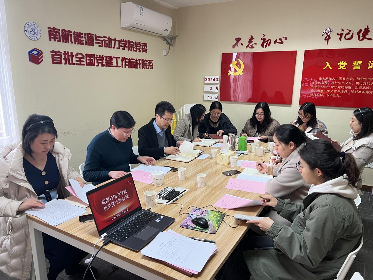 3月13日下午,能源与动力学院机关党支部在明故宫校区十号楼703党员之家召开支部党员大会。会议由学院机关党支部书记王成军主持。
