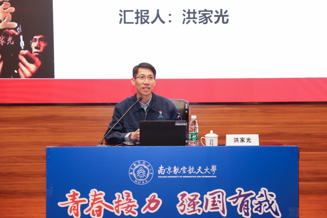 3月14日,我校举办第六期“青春接力、强国有我”军工大讲堂。中国航发黎明数控车工首席技师洪家光为师生作了题为《感悟思想伟力、汲取奋进力量——初心报国 筑梦蓝天》的报告。中国航发黎明人力资源部员工管理室副主任金杨、我校机电学院党委书记刘虎、学生处副处长佘明以及300余名学生代表参加活动,报告会由机电学院党委副书记赵铮主持。