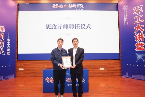 洪家光,现任中国航发黎明数控车工,高级制造工程师,享受国务院特殊津贴,国家级技能大师工作室领办人,国家科技进步二等奖获得者,全国劳动模范,党的二十大代表。二十多年来,洪家光始终秉持航发人“国家利益至上”价值观,创新进取、勇攀高峰,为航空发动机产品生产研制专用工艺装备,为飞机打造出强劲的“中国心”。报告会上,刘虎为洪家光颁发机电学院“思政导师”聘书并举行聘任仪式。