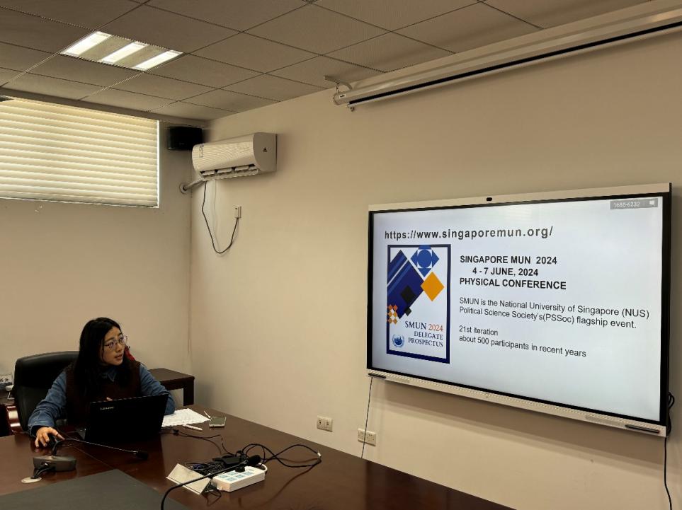 之后,李萍就代表招募、后续笔面试安排的具体细节和与会教师进行了交流。大会顺利结束,期待我校师生在新加坡模拟联合国大会赛场中斩获佳绩!