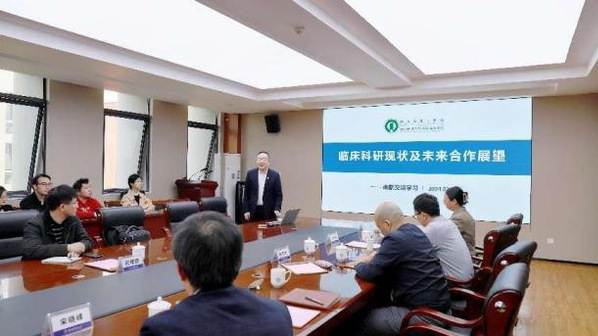 南京市第一医院院办主任曹艳和自动化学院副院长张卓然教授分别从总体情况、科研队伍、学科专业、教学设置等方面作了南京市第一医院和自动化学院的情况介绍。随后双方围绕医工交叉创新技术进行了深入交流和讨论。