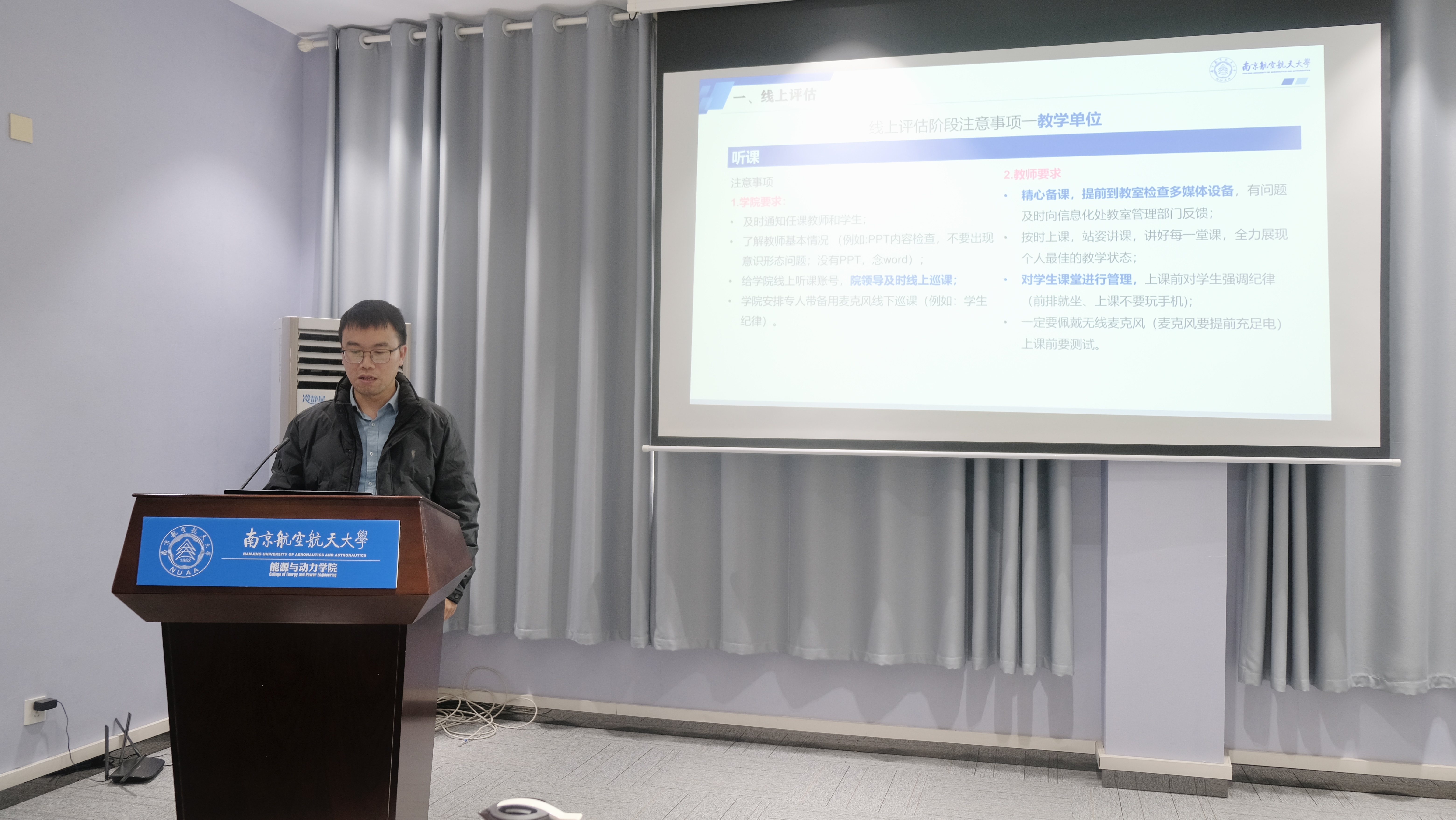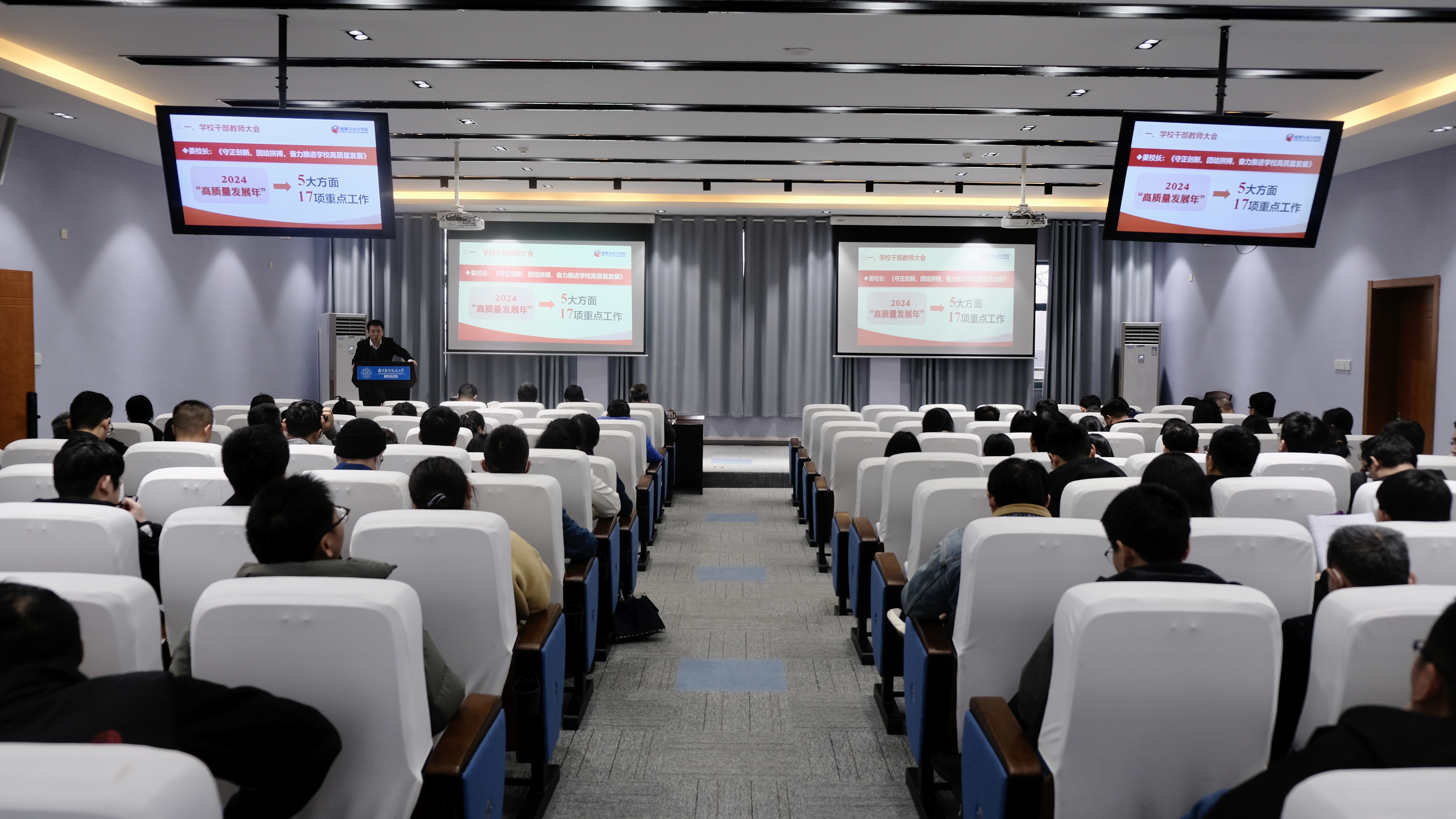 3月27日下午,能源与动力学院在十号楼619报告厅召开2023-2024第二学期全院大会,全体教职工参会。会议由院党委书记徐川主持。