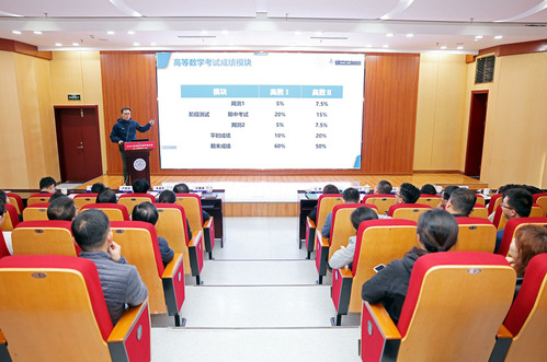 数学学院大学数学教学与研究中心主任朱晓星、物理学院大学物理教学与研究中心主任马海霞分别就《高等数学》《线性代数》《概率论与数理统计》《大学物理》等基础课程展开学情分析。两位老师以详实的数据作为支撑,从不同校区、不同学院、不同学科、不同课程等级等维度分析了学生成绩分布和学习状态,就如何帮助学生提高课程学习效果提出了具体的可操作性建议。