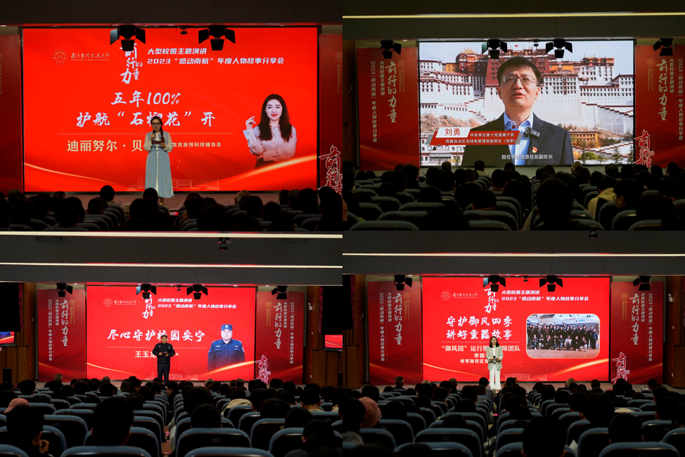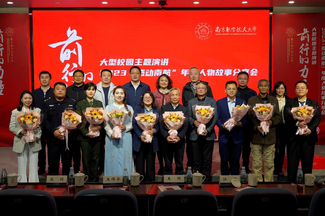 分享会围绕责任、担当、抱负三个关键词展开了一段段故事。2023“感动南航”年度人物吴日新、徐强、彭建华、陈杰、迪丽努尔·贝坎、刘勇、王玉龙、“御风园”运行服务保障团队、阿伊提拉·买买提、方志耕、微波电子团队分享了他们的奋斗故事和感人经历,娓娓道来,感人肺腑。他们是不平凡的2023年里所有平凡的南航人奋力拼搏的缩影,也是南航最可爱、最可敬的人。