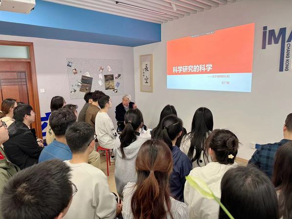 揭牌仪式后,车广锦为师生带来《科学研究的科学》专题交流,从科学方法与科学的方法、科学研究与技术性研究、关于思辨的认知、论证与训练等五个方面,与同学们进行了深度的交流与互动。