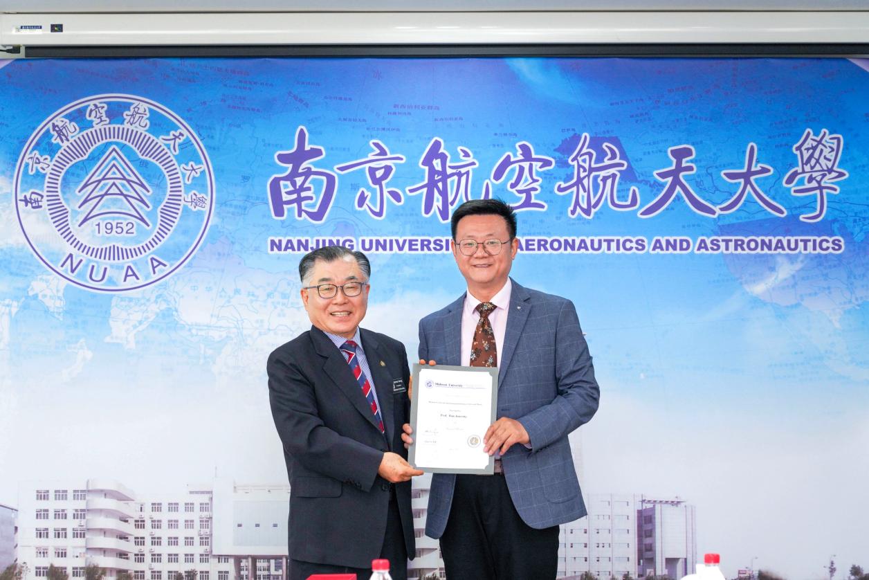 James Song为学院院长板俊荣颁发博士生导师聘书。