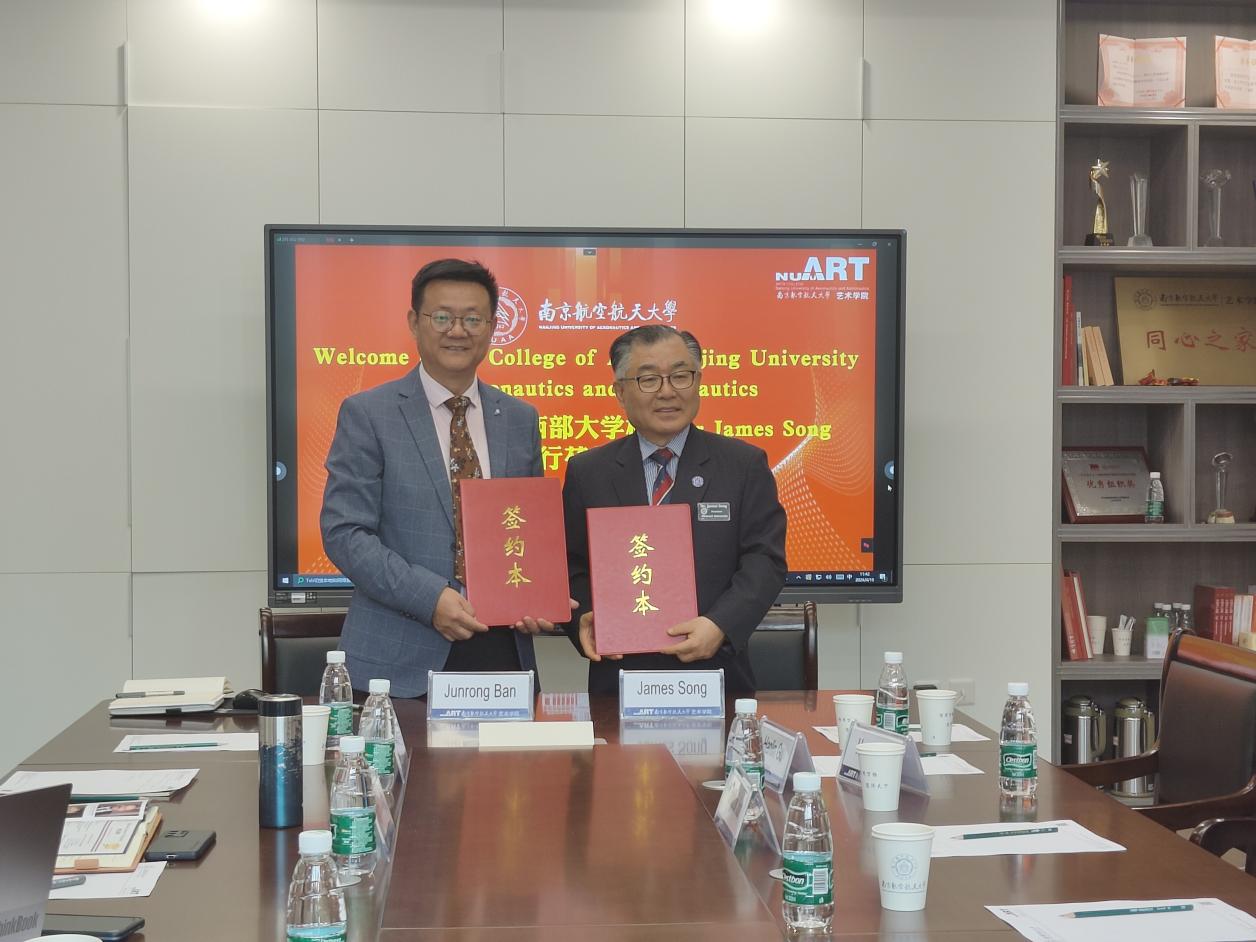 随后,James Song一行到学院交流座谈,板俊荣介绍了学院的师资队伍、教学科研、发展规划等情况,并详细讲解学院近年来在人才培养、师资引进、学科建设、校园文化服务等方面采取的举措和取得的成绩。双方围绕学科布局、专业方向设置等议题开展了深入交流研讨,James Song与板俊荣代表双方学院签订友好合作协议。