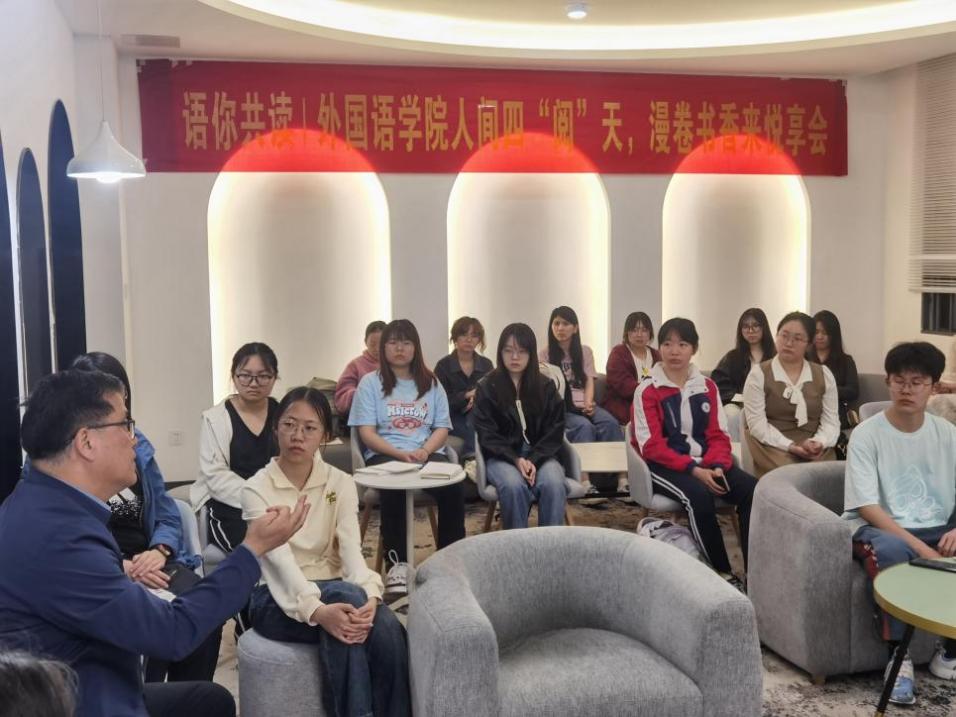 2024年4月23日,外国语学院在一楼院史馆举办了“人间四‘阅’天,漫卷书香来”读书活动。本次活动以“世界读书日”为契机,采取比较文学的形式,通过一系列丰富多彩的活动,旨在激发同学们的阅读热情,提升文化素养,丰富精神生活;引导同学们通过阅读,正确认识中国特色和国际比较,全面客观认识当代中国、看待外部世界,扩大国际视野。外国语学院院长范祥涛、本科生辅导员姚灵珑与来自各个年级的学生代表参加了本次活动。