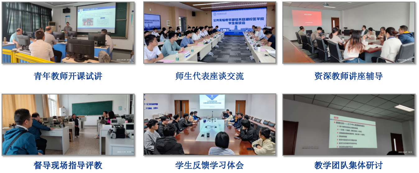 目前组建6个科研团队,鼓励实验教师参与科研工作,落实科教融合战略;建有4个校级公共基础课程教学团队,充分激发教学团队力量,促进课程教学规范化、专业化、特色化建设;联合南京大学、杭州电子科技大学,牵头申报并获批首批江苏高校省级优秀基层教学组织“新工科背景下高校实验教师队伍建设研究团队”,积极开展实验教师队伍建设相关的教学改革研究。通过鼓励教师积极开展研究型实践教学模式探索和实践,立项建设开设一批特色实践课程,开展多种新形态教材建设,打造虚实结合、多校区联动的主题创新区、创新实验室等大学生创新实践空间,构建形成“需求导向、资源保障、学科交叉、科教融汇”的实践育人平台。