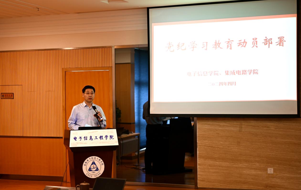 为深入学习贯彻习近平总书记关于党纪学习教育的重要讲话和指示精神,落实校党委关于党纪学习教育的相关要求,4月29日,电子信息工程学院在电子信息学院楼515报告厅召开党纪学习教育动员部署会,全面动员部署党纪学习教育工作,学院班子成员、党委委员、党支部书记及全体党员参加,会议由学院党委书记季海群主持。