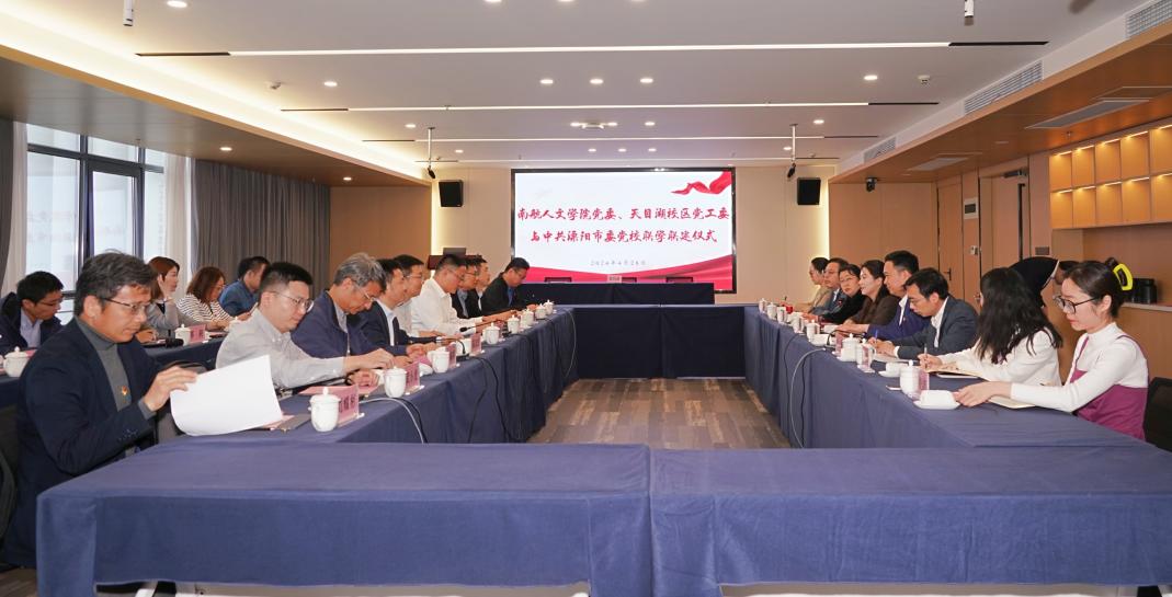 4月28日,人文与社会科学学院党委与天目湖校区党工委、中共溧阳市委党校开展联学联建活动,深入学习贯彻习近平总书记关于党纪学习教育的重要讲话和重要指示精神,推动党建引领高质量发展。学院党委理论学习中心组成员、校区党工委理论学习中心组成员及师生党支部记、相关部门领导参加了学习。会议由溧阳市委组织部副部长、市委党校常务副校长陶华美主持。
