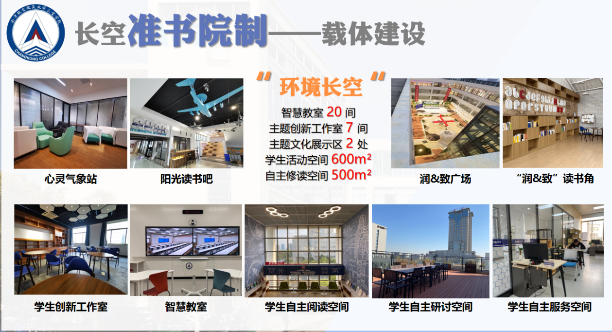 升级智慧载体,突出文化育人。学院持续推进了育人载体提升工程,新建宿舍文化育人阵地2.0版本——“慧居”,升级“长空之家”公区硬件设施与条件,优化长空学院“准书院制”智慧教育空间区域布局,并会同教务处、学生处、教发中心开展了研究制定了专家现场考察路线图并多次演练,力求全方位展现育人文化和教育教学改革实施成效。