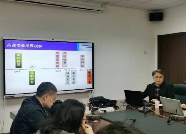 英语系主任张立新从英语专业建设、人才培养模式、创新班3个方向的课程设置以及教学模式四个方面汇报英语专业情况。副院长徐以中介绍了此次研讨会的前期调研和相关背景,对“创新班培养模式”进行了解读,特别强调了课程设置的合理性、层次性和社会认可度。