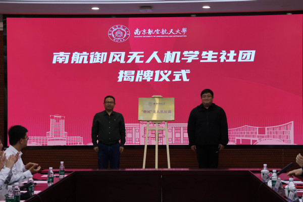 杨一和杨波共同为南航御风无人机学生社团揭牌。