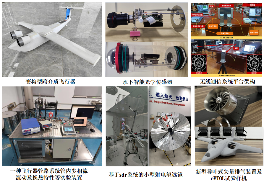 2023年度长空创新班大创项目研究成果丰硕,学生依托大创项目获江苏省高校大学生物理与实验科技作品创新竞赛二等奖等奖项,撰写6篇论文投稿至国际权威学术期刊和会议,已受理和授权发明专利18项,制作基于sdr系统的射电望远镜、变构型跨介质飞行器、水下智能光学传感器等科创实物作品25项,编写软件系统及程序23项,成功获批2项航空航天结构力学及控制全国重点实验室青年学生项目,力争产出更多前沿性的创新成果。